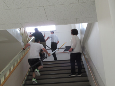 引き渡し訓練は、雨になってしまい、校内での引き渡しとなりました。