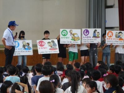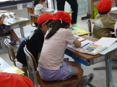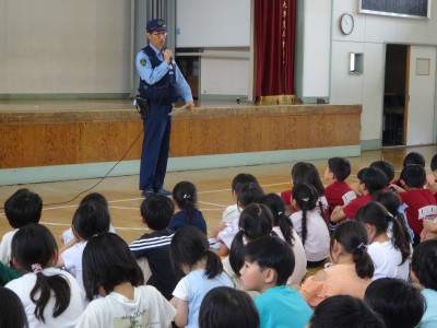 休み時間、子どもたちは、楽しく校庭で遊んでいる子もいれば体育館で鼓笛の練習をしている子どもたちも、それぞれが活動をしていました。そこに突然「これから避難訓練を始めます。」の放送が、子どもたちの中には、「急いで避難しなくちゃ」と行動を始める子、放送の指示を聞くためにじっと動かずに聞き耳を立てている子等、様々な様子が見られました。