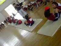 縦割り班で、各種目の場所を回ってテストを行いました。