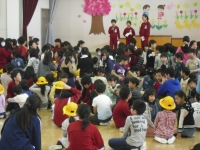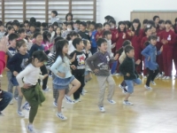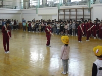 1年生限定の『○×クイズ』、全校児童での『仲間集めゲーム・自己紹介』。その後、ダンスタイムに移り、2年生による「PPAP、地球人」の楽しいダンスと3年生による「恋ダンス」の披露と、大盛り上がりでした。1年生は、上級生と一緒にゲームやダンスをして、とても楽しんでいました。出し物の最後に阿武隈小学校の校歌の全員合唱がありました。