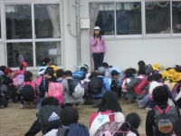 佐藤校長先生からは、「① みぎ、ひだり、みぎ ( 左右の確認) ② とびだし (急な飛び出しをしない) ③ ヘルメット (自転車乗車時にはヘルメットの着用)」等についてお話がありました。今後もより迅速な下校を目指すとともに、交通ルールを守り、安全な登下校まで心がけて指導に努めていきます。