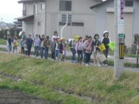 校舎南側に下校のコースごとに素早く整列し、担当教師と一緒に正しい歩行の仕方や危険箇所の確認をしながら下校しました。