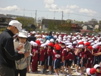 今年度の最初の避難訓練を地震、火災を想定して実施しました。1年~6年の各児童は、「前半の事前指導の内容」を念頭において、教師の指示を真剣に聞き、機敏に避難する姿がありました。1年生は、初めての体験で、非常ベルの音に驚きながらも、真剣な表情で避難していました。