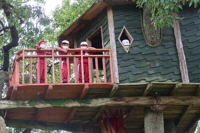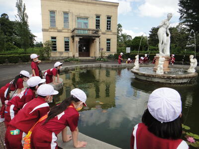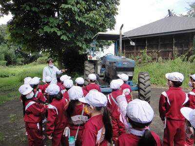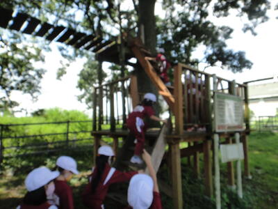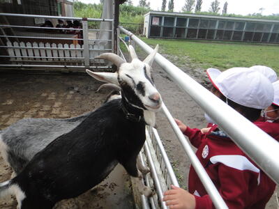 2021年9月8日 13時25分9月7日(火)に1年生が研修バスで岩瀬牧場に行ってきました。ツリーハウスに上ったり、動物にエサをあげたり、とたーに乗ったりと午前中楽しく学習してきました。