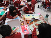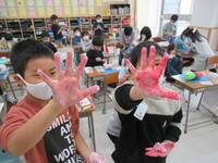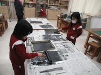 2021年11月26日 10時53分今日の3校時には図工の時間を楽しむ学級が多くありました。1年生は、松ぼっくりでクリスマスツリーを、2年生は版画とすごろくづくりを、3年生は、紙粘土を使って空き容器の変身を、6年生は、ドリームプロジェクトで未来の街づくりを、それぞれ楽しみながら想像力を働かせて活動していました。