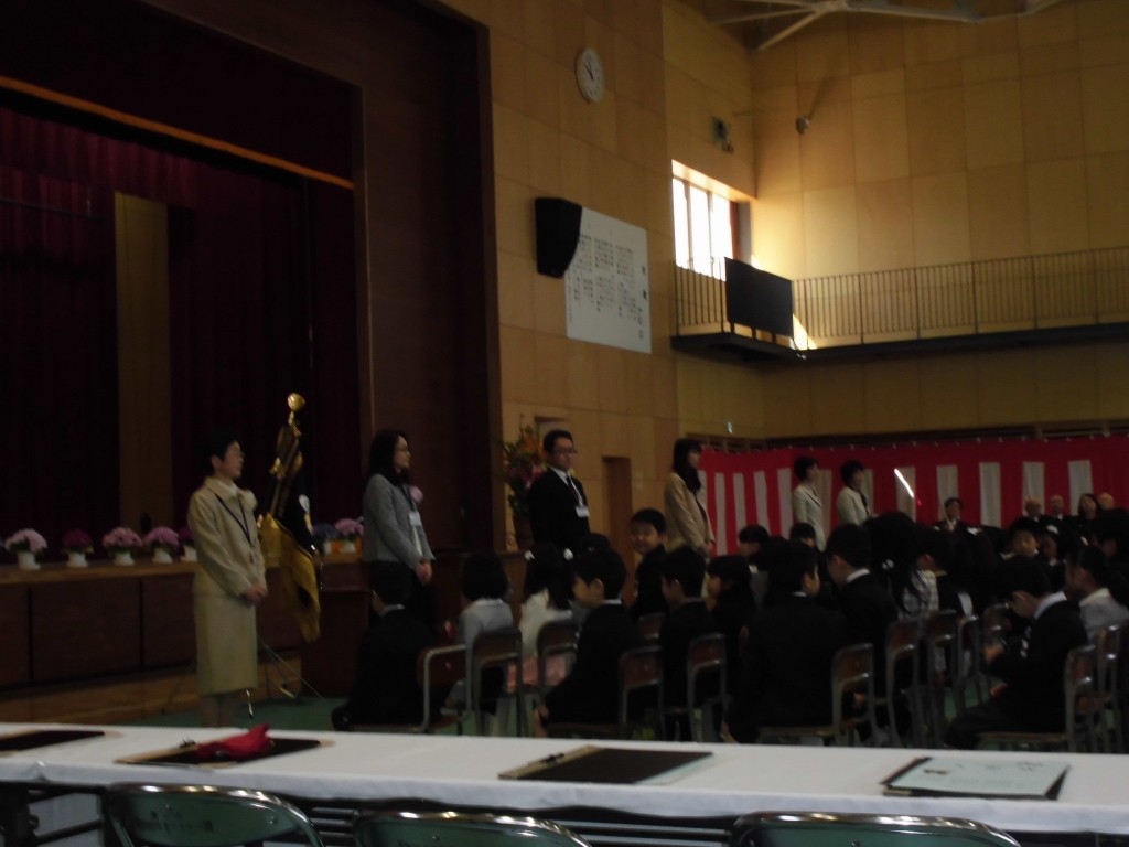 2016年4月6日 15時56分 本日、入学式を行いました。新しい校舎に引越しをしてから初めての入学式になります。新入児童87名は、「さんぽ」の音楽に合わせて入場したり、担任の先生に名前を呼ばれたときに、元気に返事をしたりすることができました。関係団体の方々から記念品を受け取りました。一年生が健やかに成長できるよう、皆様のご支援ご協力のほど、よろしくお願いいたします。