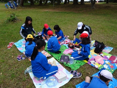 2015年11月4日 17時39分 11月3日(火)文化の日に市民体育祭のサッカー競技大会が空港公園緑のスポーツエリアで行われました。本校の特設総合運動部の5・6年生児童が参加し、市内の小学校チームやスポーツ少年団、クラブチームと対戦しました。福島県でも有数のすばらしい芝のコートでサッカーを楽しみ、5年生Bチームは全試合無失点優勝というすばらしい活躍でした。選手のために温かい飲み物等を準備してくださいました総合運動部理事の皆様、保護者の皆様、試合で大きな声援を送っていただいた保護者の皆様ありがとうございました。