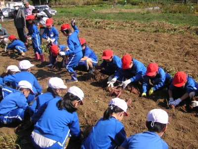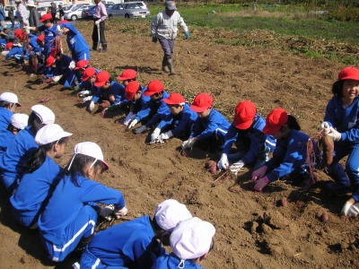 2015年10月21日 17時45分10月21日(水)、さわやかな秋晴れのもと、大町生き生き農園で須賀川市生き生き交流農園収穫祭が開かれました。毎年この収穫祭に本校2年生が招待されています。今年も、2年生がさつまいも収穫の体験をさせていただき、その後、トン汁をごちそうになりました。子どもたちにとって、楽しい一日となりました。おみやげに大きなサツマイモをいただきました。須賀川市老人クラブ連合会の皆様にお礼申しあげます。