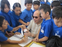 2015年10月5日 17時51分 9月29日に、社会福祉協議会の佐藤さんと視覚障害を持つ高畑さんの2人の先生をお招きして、4年生の総合的な学習の時間で福祉について学習しました。高畑さんは、目が見えないという障害を持ちながら、写真をとることが趣味であることや視覚障害者が日常生活で使っているものの話、4年生からのいろいろな質問についてなどたくさんの話をしてくださいました。これからの学習で役立つ実体験からの貴重なお話をありがとうございました。