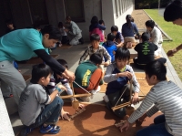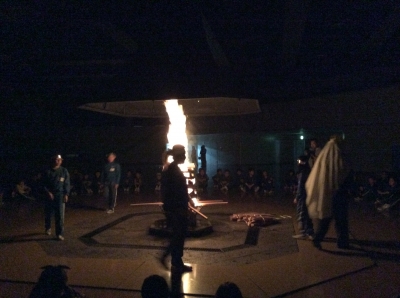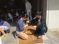 2015年9月30日 11時32分宿泊学習の最後のプログラムは、福島県文化財センター白河館(まほろん)での学習です。高床式倉庫や竪穴住居などの戸外の展示物、歴史をさかのぼりながら学ぶ館内の展示物、個人では見ることのできない倉庫内の貴重な資料などを説明していただきながら見ることができました。また、火おこし体験では、木と木をすり合わせて火おこしをし、上手に火をつけることができました。