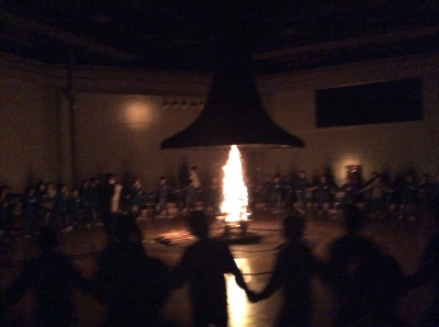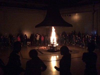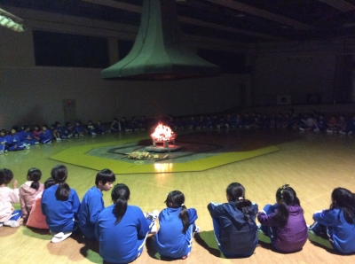 2015年9月29日 20時19分今回の宿泊学習で子どもたちが一番楽しみにしていたキャンプファイアを行いました。火の神から5つの火をいただいた火の子たちが、誓いの言葉を述べ、点火しました。「自立の火」「協働の火」「福祉の火」「友情の火」「勇気の火」の5つです。この誓いを子どもたちが心にとめて成長していくことを期待しています。