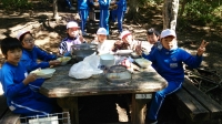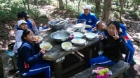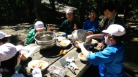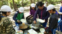 2015年9月29日 20時05分夕食は今日もとても美味しかったです。子どもたちは次に行われるキャンプファイアの準備のため急いでいたようです。