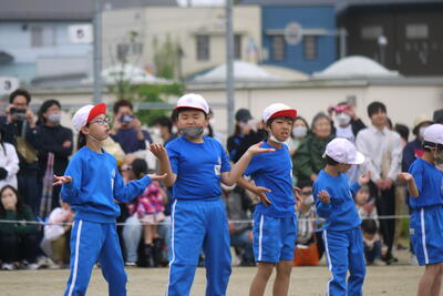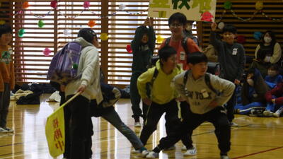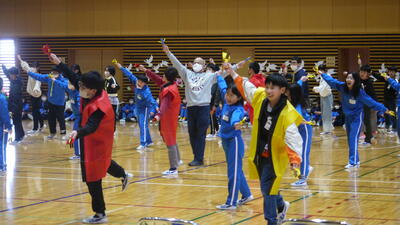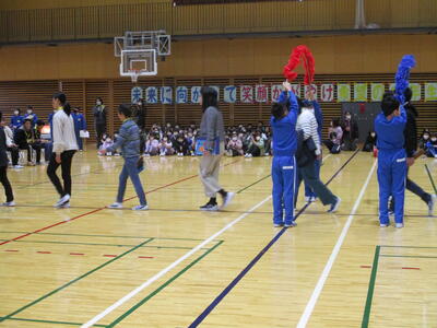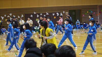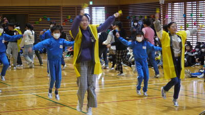 4年生は「よさこい」。6年生にも混ざってもらいながら一緒に楽しみました。実は、感染症で学級を閉じているクラスもありみんなそろって6年生へのプレゼントをしてあげることはできませんでした。だいじょうぶ。6年生への感謝の気持ちは人数がクスなくともちゃんと届いていましたよ。