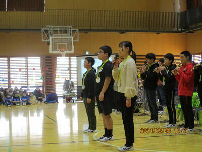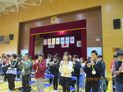 さいごは、6年生が1年生から5年生へ向けて演奏とメッセージのプレゼント。