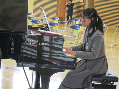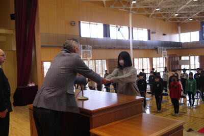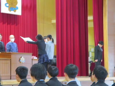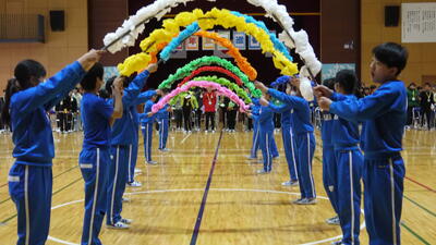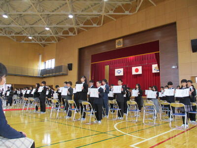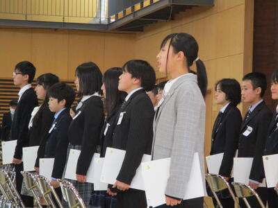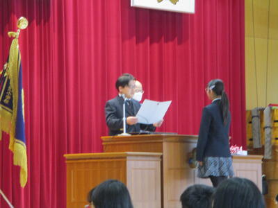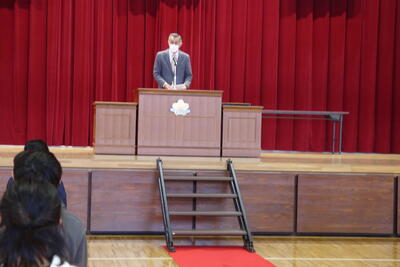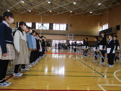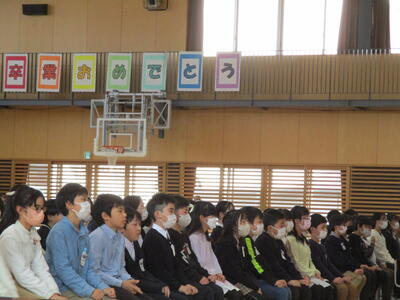 卒業する皆さんは、6年間、勉強、スポーツなどに一生懸命取り組んできました。皆さんを支えてきてくれた家族や先生方に感謝していただきたいと思います。
