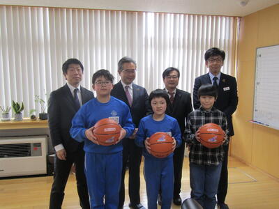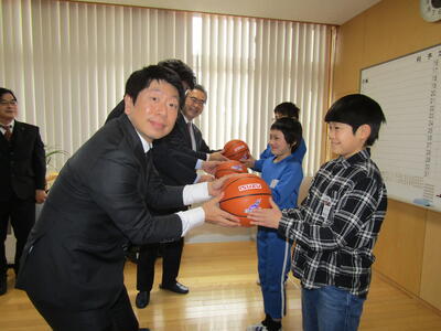 2024年2月29日 16時58分(株)ISUZU自動車様よりバスケットボール10この寄贈があり、校長室にて体育委員会の子どもへと伝達されました。