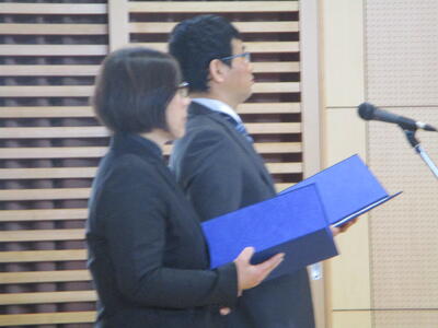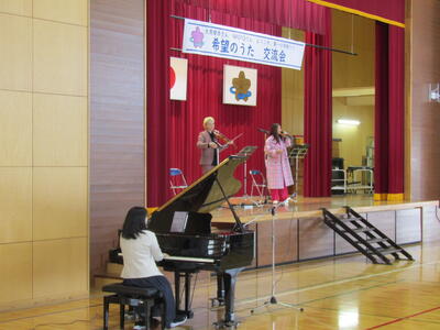歌が届いてから初めての卒業式は、第一小学校の体育館も地震で壊れ使えなかったため、市の文化センターで行いましたが、それは、はじめて「希望のうた」を世の中にお披露目する機会でもありました。