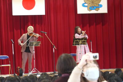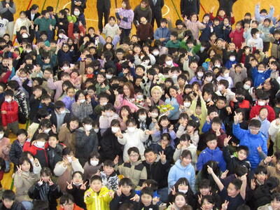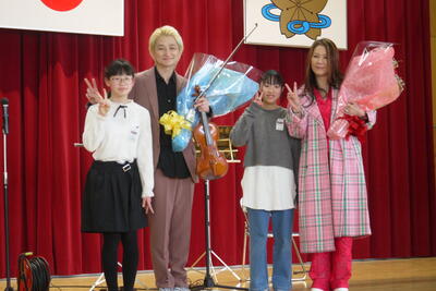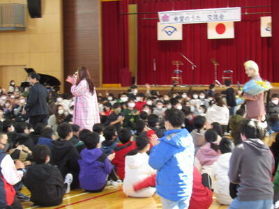 節目となる日が近づいているこの日、本校に日本を代表するビッグなアーティストが来校。子どもたちとふれあう機会を持ちました。