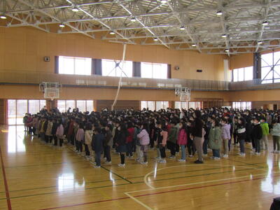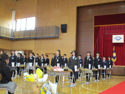 6年生を送る会は、毎年、卒業を目前に控えたこの時期に、お世話になった6年生に対し、1年生から5年生までの児童が感謝の気持ちを伝える場として行っています。