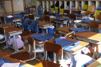第一小学校は、校舎、体育館、校庭すべてが使えなくなりました。幸いにもけがをした児童、職員がいなかったことが奇跡でした。