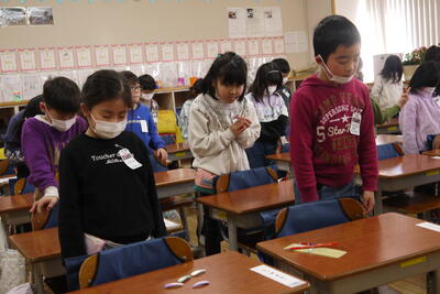 第一小学校では、これらの経緯を踏まえ、防災の大切さや命の大切さを考え、多くの人からの支えがあって今の第一小学校があることを認識し、感謝の気持ちを持つことができるようにする機会とするため、毎年3月11日を「震災を考え る日」として、避難訓練や校長の講話などを行っています。