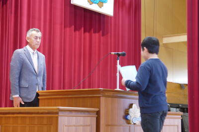 そして5年生の「6年生を送る会」実行委員長のあいさつです。