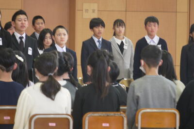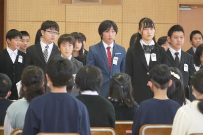 これからの中学校生活がすばらしいものとなるようエールを送りあいさつとします。