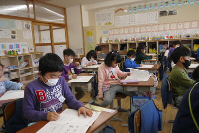 授業者の問いに、文脈に沿って考え答える子どももが増えてきました。これも一年生の成長のあとです。