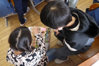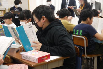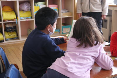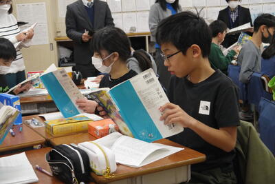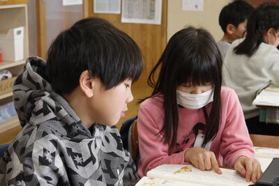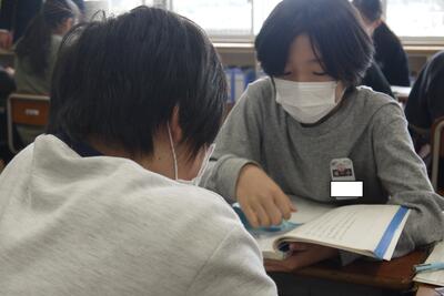 子どもは、読みます。深いところまで読み込めるよう、何度も何度もペアでよみます。