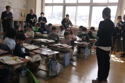 なお、石井さん来校にあわせて、北海道より三井 哲(みつい あきら)さん(元学校長 北海道教育大 学びの共同体SV)、静岡県より稲葉義治(いなば よしはる)さん(元学校長 富士学びの会 学びの共同体SV)も来校。石井さん同様、アドバイスがありました。さらには市教育委員会指導主事や市研修センター指導主事も来校しまし、一小の取り組みを参観し、同じくアドバスをもらいました。