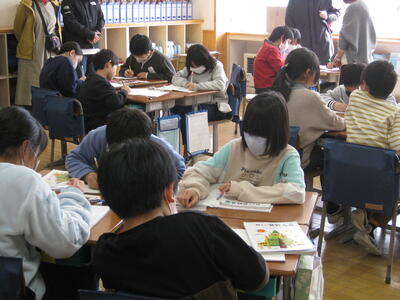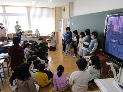 10月に来校して以来、数ヶ月でまた一段と子どもが育っていることに触れた上で、物語文、説明文の読ませ方とそこでの教師の関わり、授業をつくる上で大切な教材研究と分析、国語の授業での学び合う学びのつくり方とそこでの教師の関わりなど、アドバイスをもらいました。