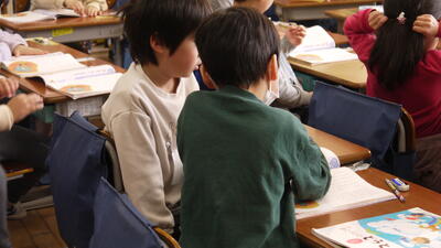 子どもの目を見ると、学びの様子が分かります。徹底的に低学年はペアでの学習、中学年以上はグループでの学習を貫いてきました。そして、授業者はできるだけしゃべらず、子どもの声に耳を傾け、子どもの学びを支えていきます。