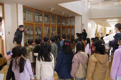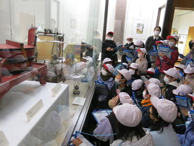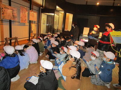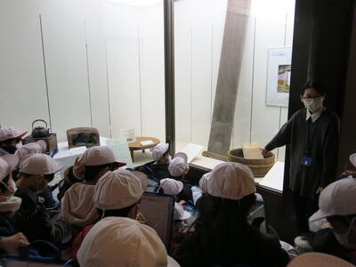 学芸員の先生がついてくわしく子どもたちに教えてくれます。
