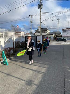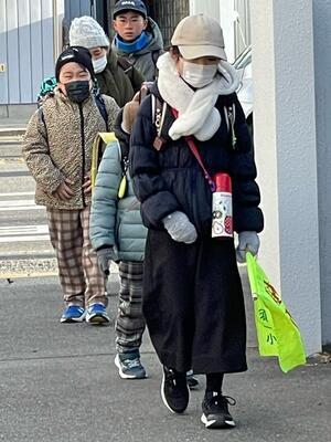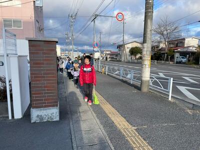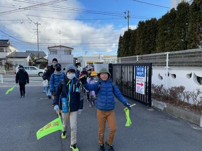 今朝もまた、とびきり寒い朝でしたが、5年生の新班長を先頭に子どもは皆元気!!