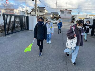 6年生は卒業までの一ヶ月あまりは5年生の新班長を見守り、支えてあげながら一緒に登校します。