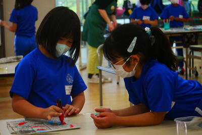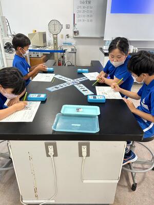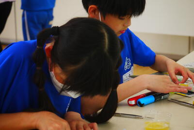 学級ごとにお昼を挟んで4コマ。学級ごとに回りながらどっぷりと楽しい理科の実験観察の体験の世界に浸ります。