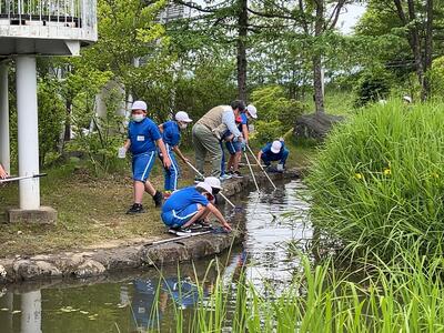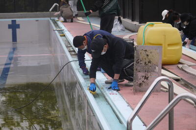 少し遡ると、GW明け、保護者の皆様に協力いただき、プール清掃を行いました。