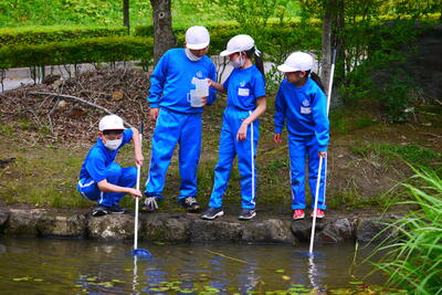 学習メニューは「放射線を調べよう」「水の中に生き物探し」「葉脈標本づくり」そして「サイエンスショー」の4コマ。