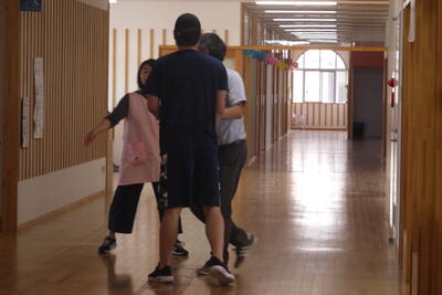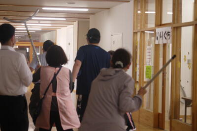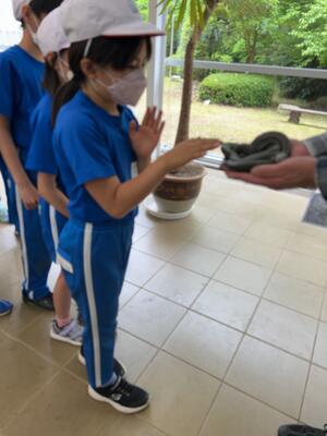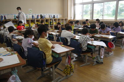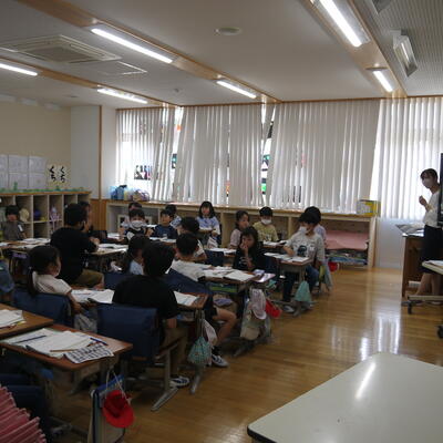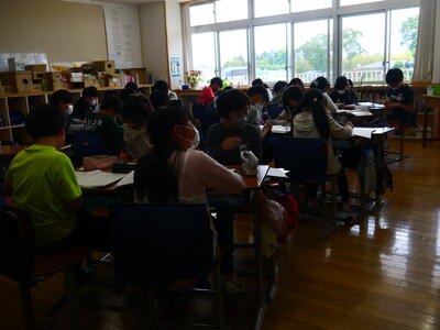支援学級の皆さん、えらいです。話をしないで担任の話をよく聞いて、物陰に身を潜めました。