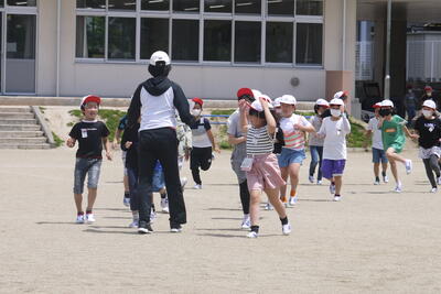 「物言わぬあやしい不審なサングラス男」役をかってでてくれた本校職員は、児童の皆さんが知っているように、本当は、とっても優しいいい教員です。