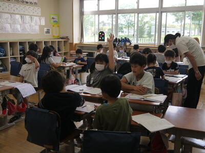 2023年5月31日 16時00分2年生 算数の授業。職員も参観。校内研修を兼ねています。