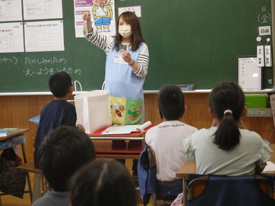 担任と栄養教諭による食育の授業 ーどんなおやつ 食べればいいかな?ー