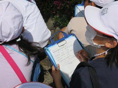 学校に戻ったら、「どんなものがあったか。」そして「誰とどんなことをして遊んだか。」振り返りながら記録をまとめます。思いだして上手にまとめようね。