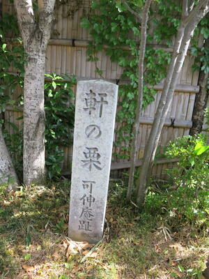 その昔、「奥の細道」で有名な松尾芭蕉が曾良とともに訪れた須賀川。そしてここにあった可伸庵で、上記の句を詠んだことから、この地を「軒の栗」と呼ぶようになりました。ここでは、芭蕉と曾良のかわいい石像がお出迎え。この空間を今は「軒の栗庭園」と呼ばれ、市民の憩いの場となっています。