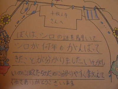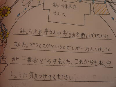 最後に先生が話してくれたのは、「小学校のとき、先生に教えてもらったことが、今、とても役に立っている。皆さんも今、たくさん学び、それを大人になったら生かしてほしい」