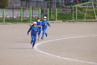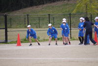 春の気持ちよい風にたなびく校旗が見守る中、校庭では、どの学年も一ヵ月後に迫った運動会を意識した体育の学習が行われています。