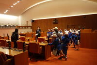この日は他校の6年生が見学しており、前を通りがかったところ、議会事務局の方に、「一小さんもどうぞ入って見学してください」と、温かい話。子どもたちもとてもうれしそうです。議会事務局員さん、ありがとうございます。