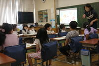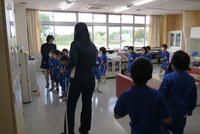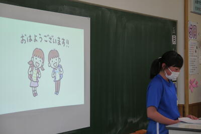 先生と子どもは初対面で、まずは、自己紹介を先生が子どもたちにします。