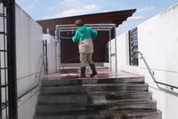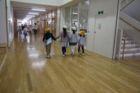 5月1日、この日は、先生と一緒に校舎の中をぐるっと歩いています。