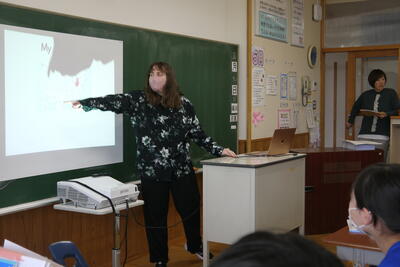 中学校のALTの先生に自分のことを伝えることが目的ですが、友達の発表をまるで自分のことのように見守り、聞いてあげられる子どもたち。立派です。